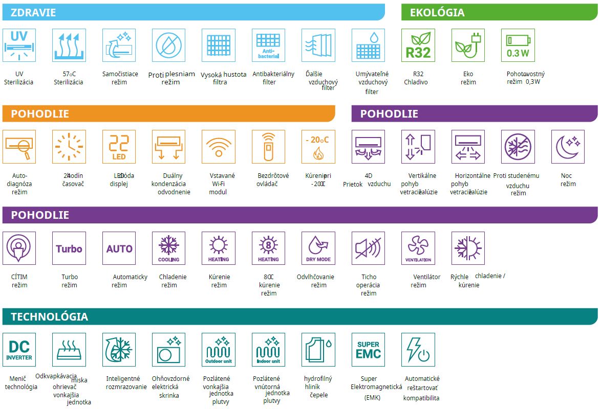 Veľkou výhodou tejto klimatizácie je čistota vzduchu, ktorú prináša. Vnútorná jednotka je vybavená UV lampou, antibakteriálnym filtrom a špeciálnym filtrom s plástovou štruktúrou. Táto kombinácia pomáha odstraňovať baktérie, vírusy, prach a alergény zo vzduchu. Výsledkom je zdravšie prostredie, ktoré ocenia najmä alergici, deti a ľudia s respiračnými ochoreniami.