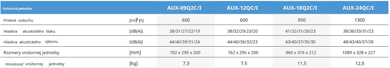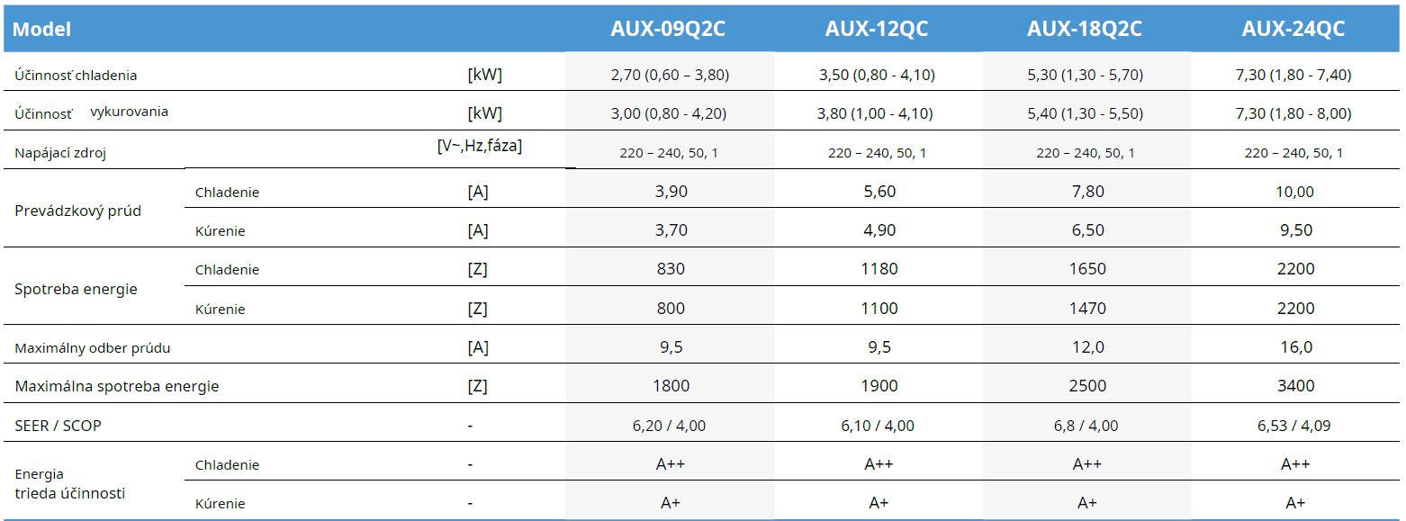 Technické parametre klimatizácie AUX Q-Smart Plus